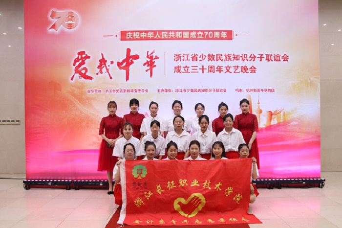 2019年10月9日,我院会计系青年志愿者协会参与了庆祝中华人民共和国成立七十周年暨浙江省少数民族知识分子联谊会成立三十周年“爱我中华”文艺晚会志愿工作,晚会由浙江省少数民族知识分子联谊会主办,在浙江省联谊俱乐部隆重举行。