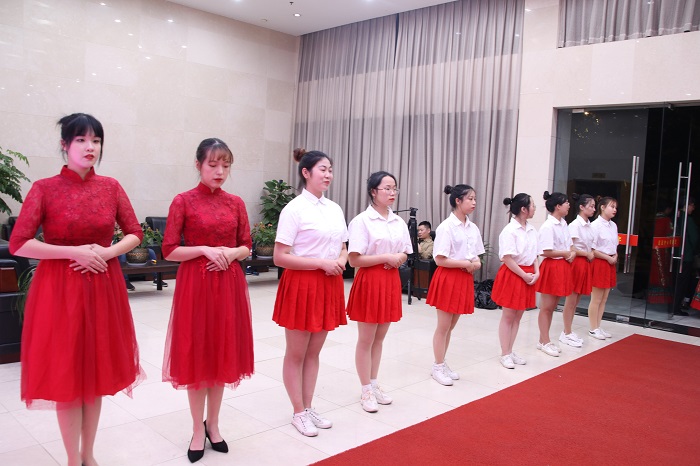本次志愿活动秉承“爱国、贡献、互助、进步”的志愿精神,志愿者们身着白色衬衣,红色短裙,主要负责迎宾、会务、后勤等工作,以热情洋溢的精神面貌,充分展现了长征学子的风采。