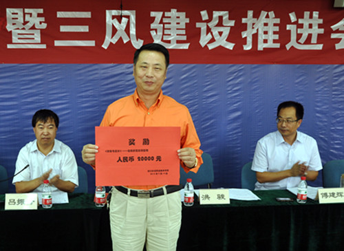 学院副院长杜宝山总结了学院一年来“三风”建设取得的喜人成绩,肯定了在“三风”建设开展后,学习文化氛围逐步转好等一系列显著成效。明确了“三风”建设下一步的几项重点工作:要牢固树立“以人为本”的价值取向,营造良好的育人环境和氛围;把课程改革推向专业建设的深水区;以教风促学风,上好每节课;以学生为本,以德育人,建设文明向上的优良学风
