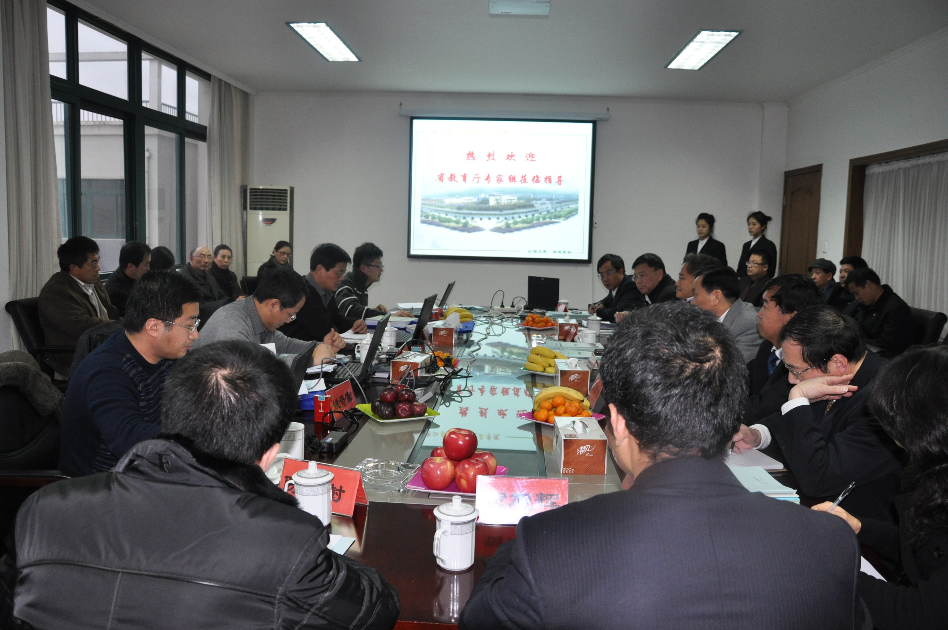 12月25日,以湖州职业技术学院院长胡世明为组长,省高教处副处长金仁康、浙江工商职业学院副院长姚奇富、浙江商业职业学院示范办主任李贤政为组员的省教育厅高等职业院校人才培养工作评估办学条件审查专家组莅临我院进行基本办学条件审查。