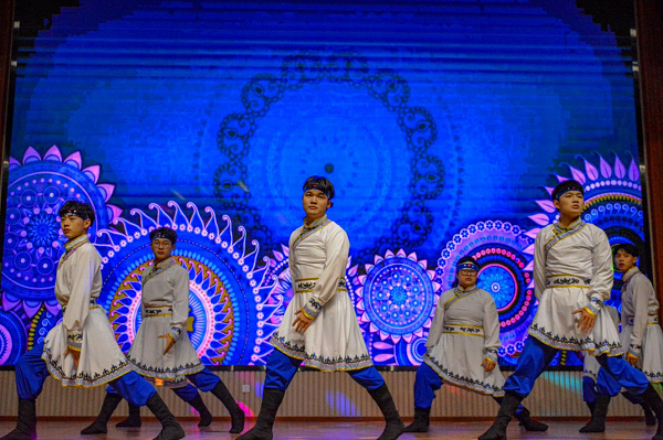 演出在开场舞《灯火里的中国》中拉开序幕,紧接着,欢快喜庆的东北秧歌、婀娜多姿的新疆舞、热情奔放的蒙族舞、韵味十足的古典舞等纷纷上演、高潮迭起,师生们用积极向上的姿态表达了对祖国和新年的美好憧憬,向大家充分展示了人文与教育学院师生的别样风采。