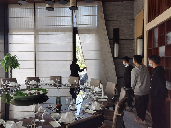 随后,湘湖逍遥庄园的工作人员带领我校师生参观了庄园的大堂、用餐包房、休闲娱乐区等,近距离了解了湘湖逍遥庄园的魅力所在。