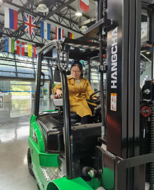 杭叉集团股份有限公司的工作人员带领大家参观了公司展厅,为大家介绍了杭叉的企业文化和各类产品,并邀请大家体验了公司自主研发的最新版叉车。