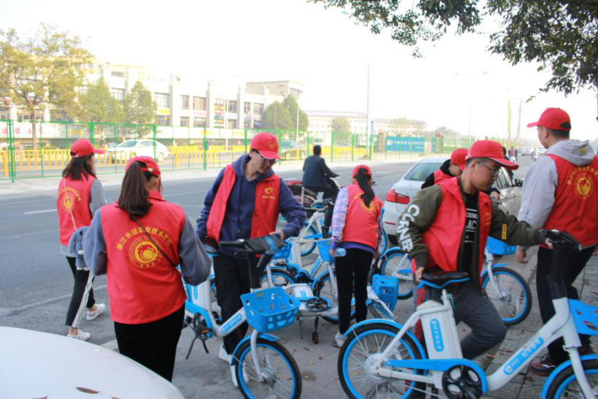 共享单车,文明同行——商务系学生会组织志愿者活动