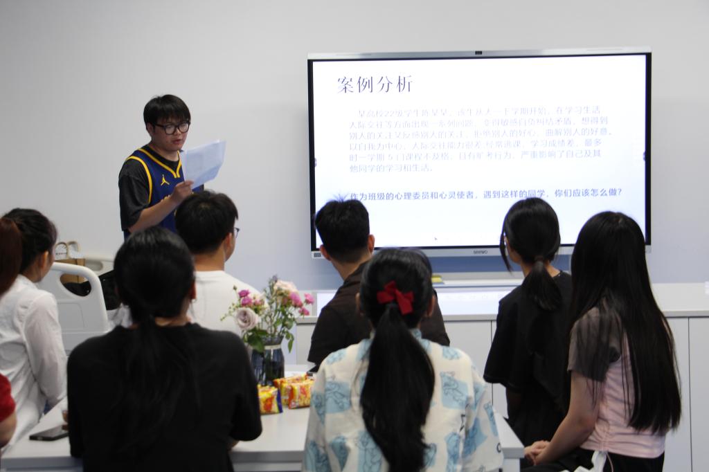 为了进一步加强心理委员、心灵使者队伍建设,提升心理委员的整体素质,发挥朋辈互助的作用,护理与健康学院心理健康中心于9月10日在实训楼北205开展了一场“心灵相约·快乐相伴”心理健康主题教育活动,22级各班心理委员及部分心灵使者代表参加了本次活动。学院学工办副主任李真真出席本次活动,活动由学院健康中心负责人王泽兵同学主持。
